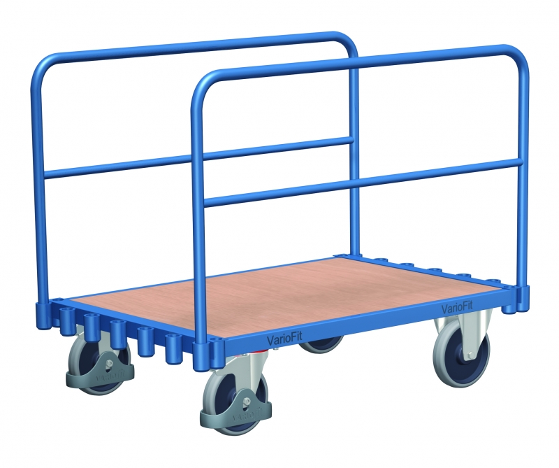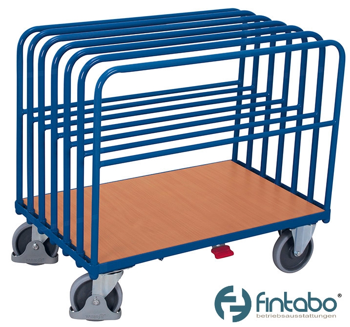 Stabiler Rohrbügelwagen zum Längstransport von großflächigen Holzplatten usw. Durch flexible Einsteckbügel sind mehrere Variationen möglich.